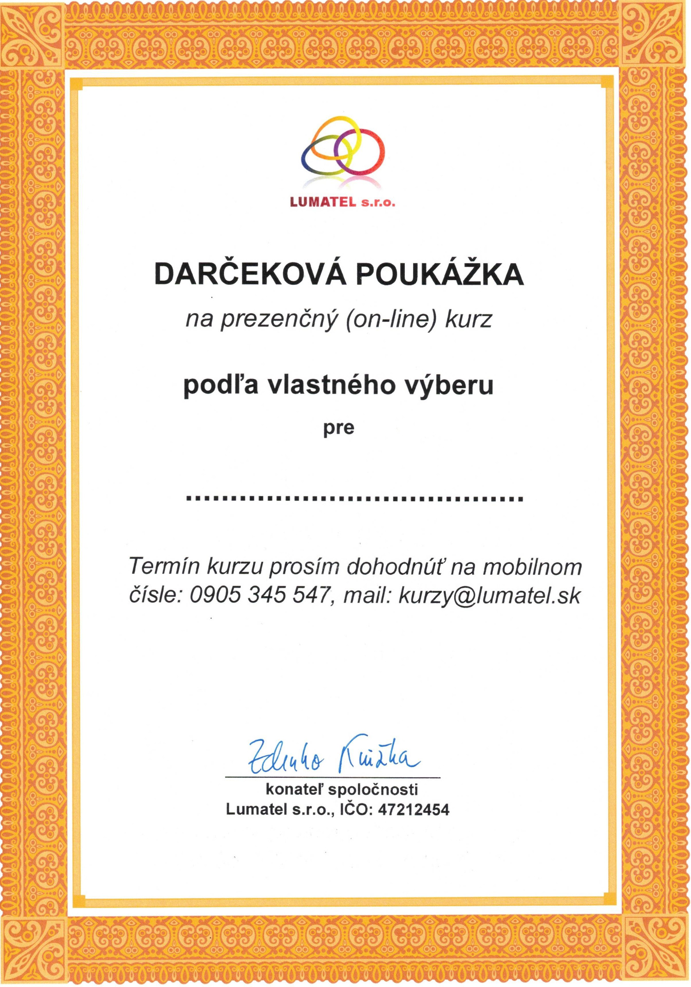 Potešte svojho priateľa, priateľku, alebo zamestnanca darčekom- kurzom podľa vlastného výberu. Viď internetový obchod.